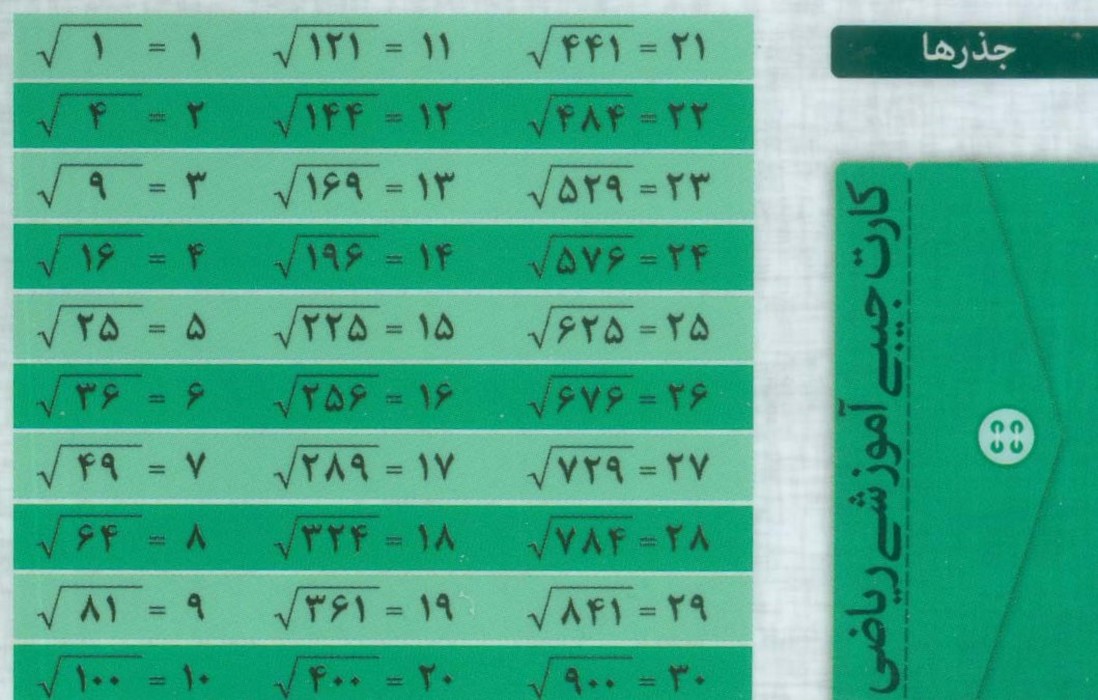 فلش کارت جیبی جذرها و توان های مهم و کاربردی (گلاسه)